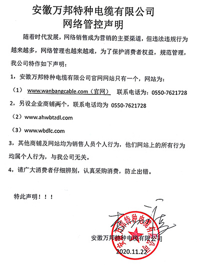 鄭重聲明:安徽萬邦特種電纜有限公司官方網站為:www_wanbangcable_com.zhengyuanrebeng.com,除此之外無任何子網站或合作網站,其余均為假冒偽劣。電話:0550-7621728 13485756353 地 址:安徽省天長市滁州高新技術產業開發區經四路29號